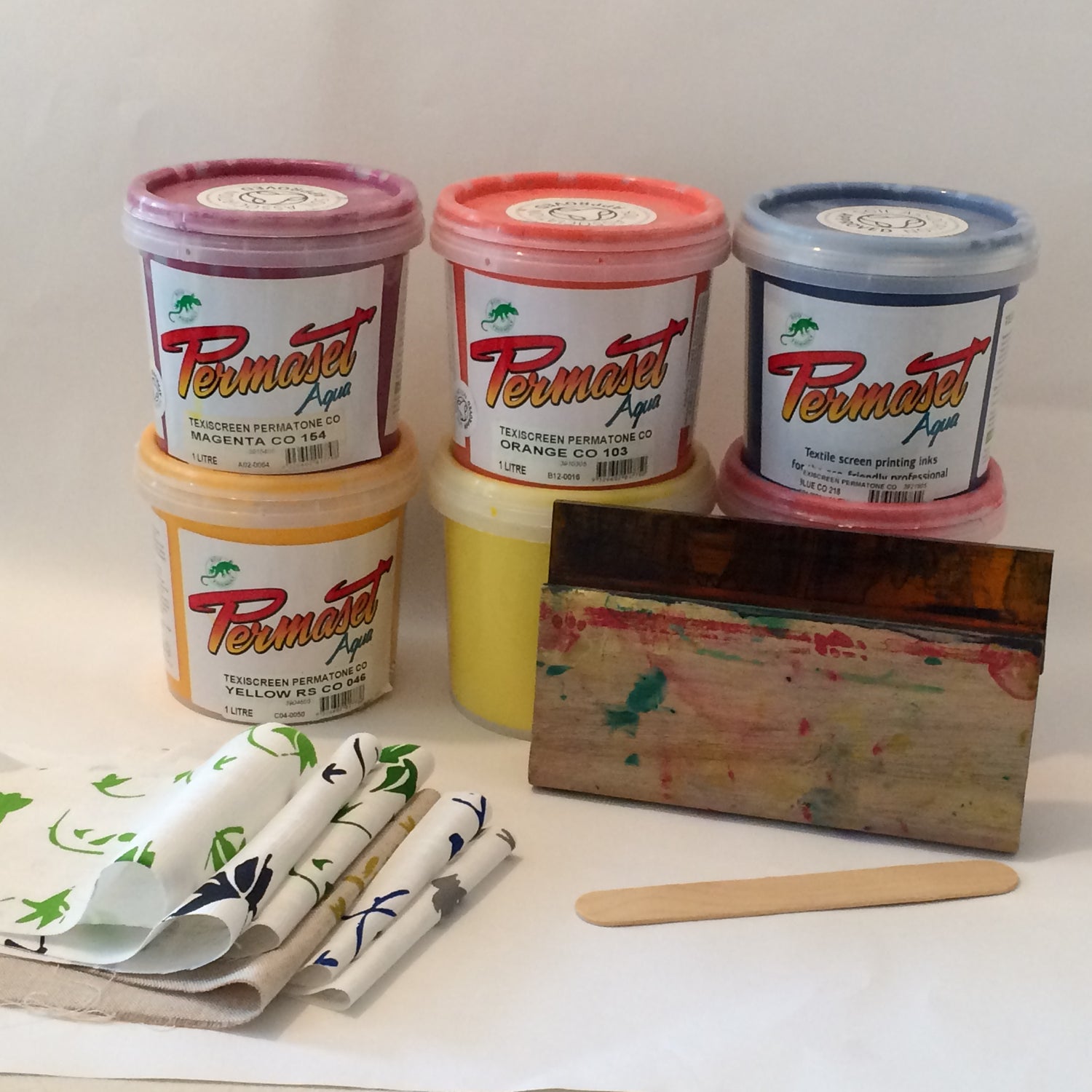 Screen printing is done by hand in the studio, using a mesh screen and squeegee to push the ink through the open parts of a stencil. Printing in this way helps us to explore colours, pattern and effects before we choose the final samples to be manufactured. We use soil association inks for the initial stages of experimentation.